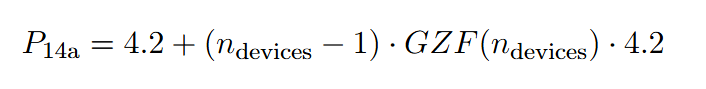 يُستخدم صيغة §14a لحساب حد الاستيراد المسموح به من الشبكة لكل الأجهزة القابلة للتحكم. يختلف الحد بناءً على عدد الأجهزة، ويمكن أن يتأثر بالإجمالي الاسمي للطاقة لكل نوع جهاز.
