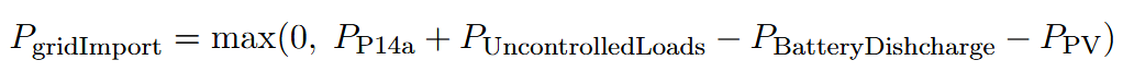 بالإضافة إلى حد استهلاك الطاقة القابلة للتحكم، تُستخدم الصيغة التالية لتحديد الحد الكلي للشبكة، لتعويض طاقة الإنتاج: