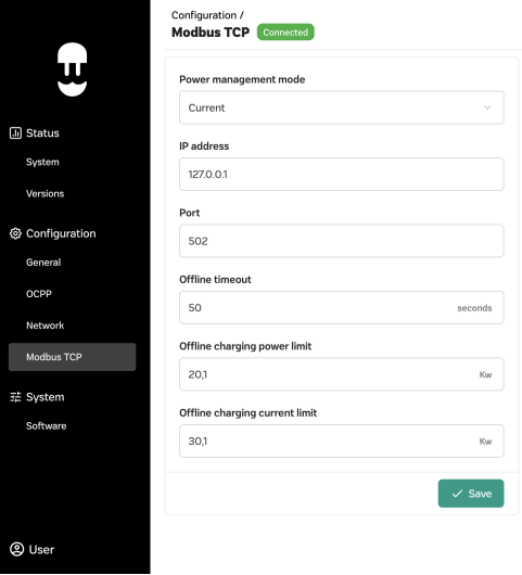 - Gehen Sie zu "Konfiguration" > "Modbus TCP"
