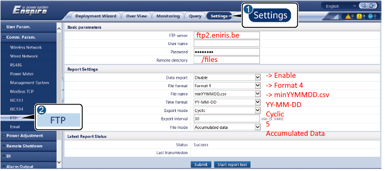 Eine lokale Intervention erfordert Kenntnisse über den Datenlogger oder Wechselrichter. So können die Daten alle 5 Minuten ankommen.